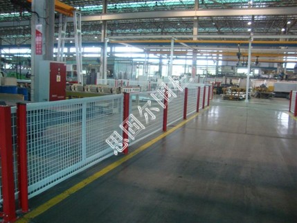 廠區圍欄大致結構為立柱和邊框通過連接件連接,也可以用網片直接與立柱卡接、螺栓連接和連接件鉚接,角度可任意調整;組裝結構全部實行標準化生產,廠區圍欄網的網片網柱焊接 大門的框架設計制作 表面防銹浸塑處理全部在工廠完成,只需現場組裝即可。